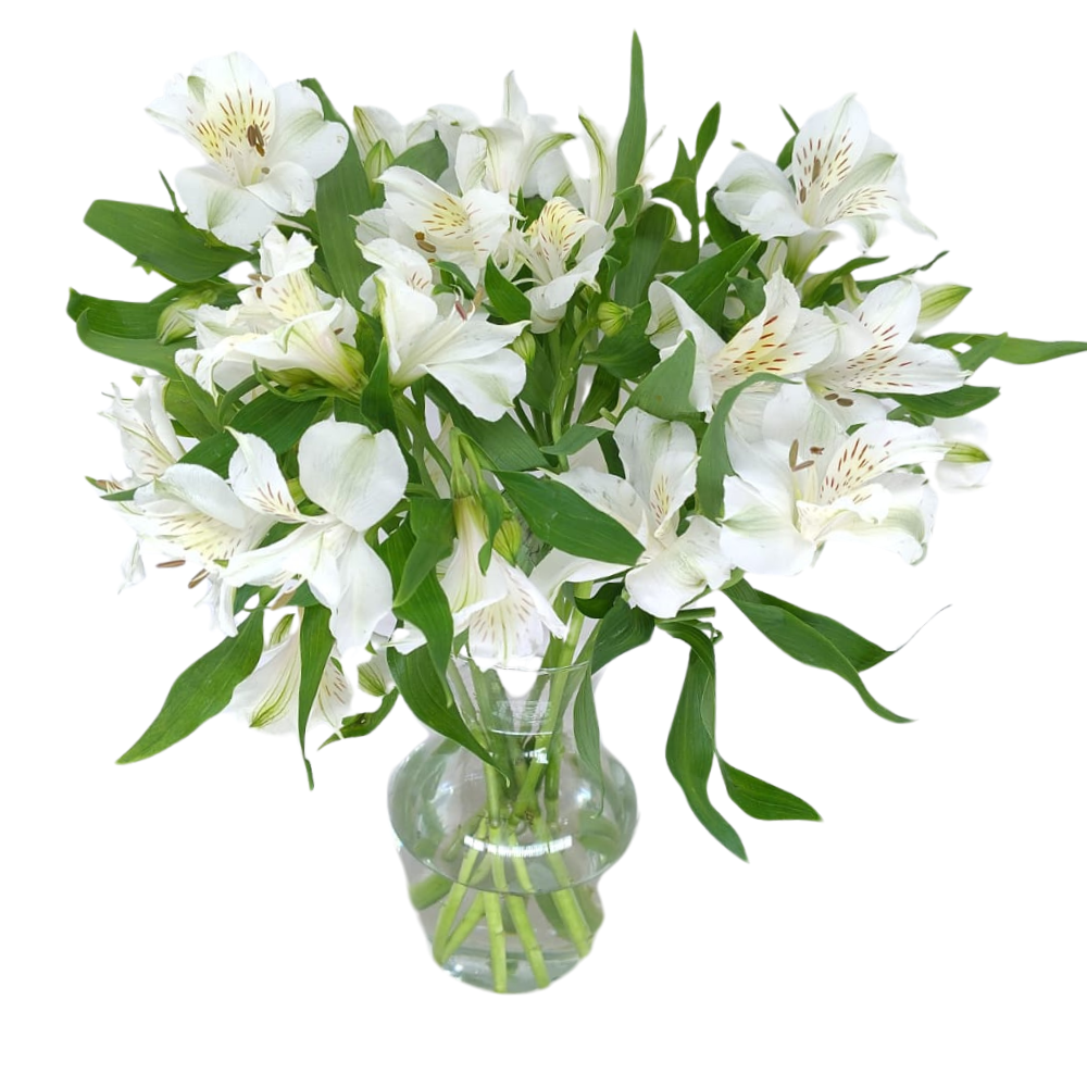 🌹 Buquê classico 5 rosas vermelhas e astroemérias brancas