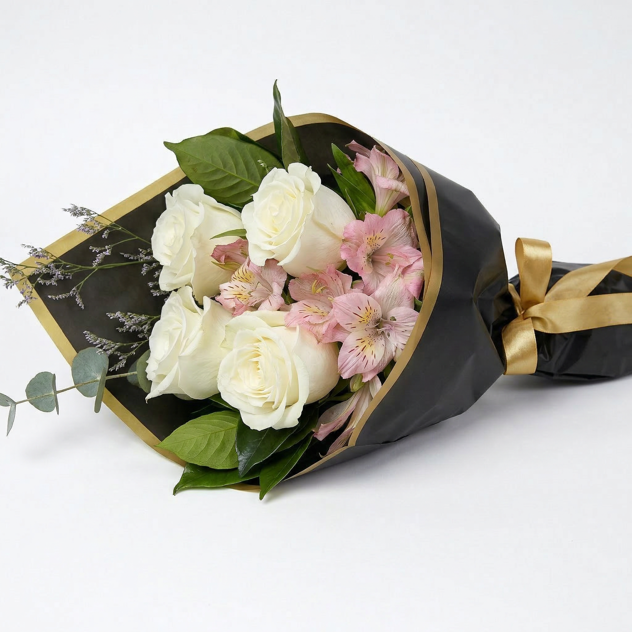O elegante Buquê Singelo com 4 Rosas Brancas, perfeito para transmitir paz, gratidão e sentimentos puros. Esse mimo delicado e cheio de significado é ideal para surpreender alguém especial em momentos de carinho, reconciliação ou homenagens delicadas.